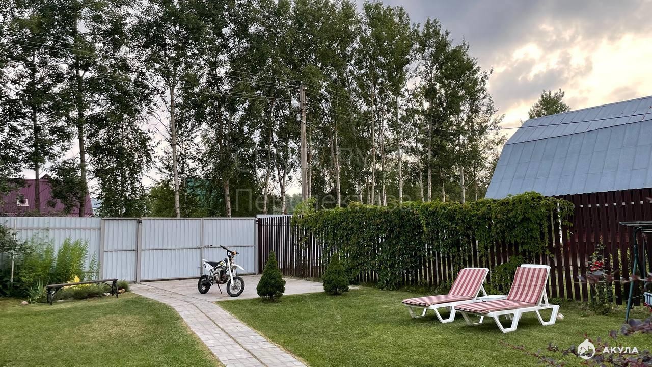 Есть площадка под большой бассейн, растут плодово-ягодные деревья и растения.