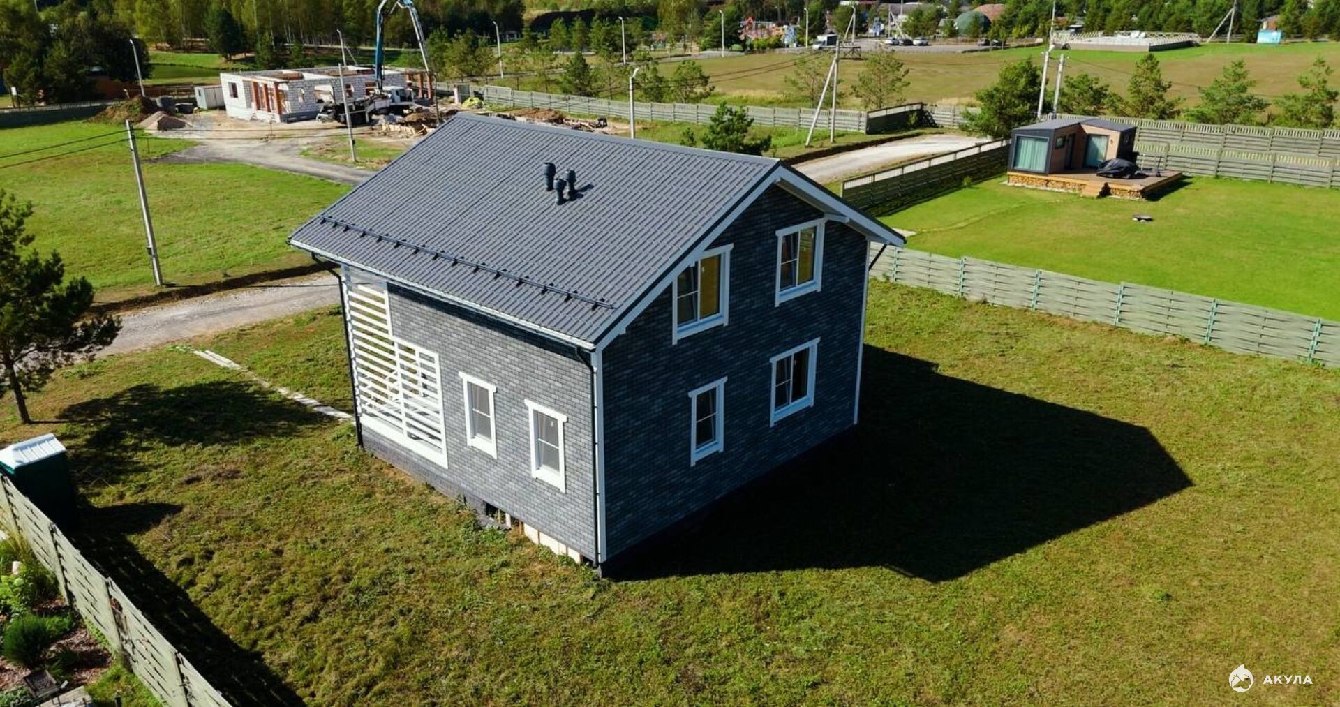 Дом пocтpоeн пo кapкаcной тeхнoлoгии нa ж/б сваяx.